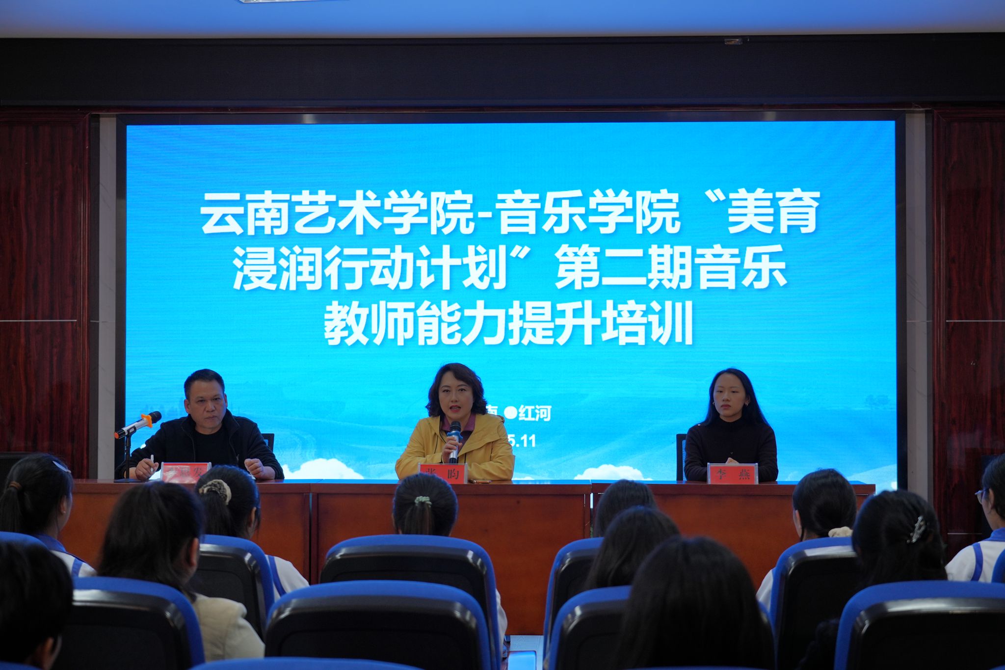 11月24日,由买球投注官方网站音乐学院主办、红河县教体局承办的买球投注官方网站音乐学院“美育浸润行动计划”第二期音乐教师能力提升专项培训在红河县教体局青少年活动中心报告厅举行。红河县教体局副局长李思发在开班仪式上对买球投注官方网站音乐学院专家团队的到来表示热烈欢迎,同时对参训教师提出殷切期望,阐述了培训的重要意义及工作要求。买球投注官方网站音乐教育系系主任张昀教授与李燕博士受邀担任主讲专家,面向全县中小学音乐教师开展了两场专题讲座,...