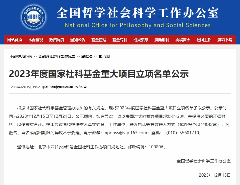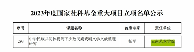 12月15日,全国哲学社会科学工作办公室对外公示2023年度国家社科基金重大招标项目立项名单,全国共336个项目拟获立项资助。买球戏剧学院杨军教授主持的项目《中华民族共同体视阈下少数民族戏剧文学文献整理研究》拟获立项。在有项目入选的144所单位中,买球是唯一的艺术类院校。