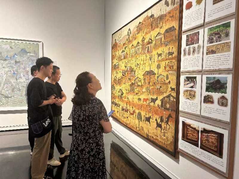 我院美术系教师刘洋、尹雁华带领本科学生饶诚和美术学院研究生白勒发、董福三位同学,共同合作完成岩彩壁画作品《一个民族都不能少 —— 独龙族之脱贫攻坚》入选第十四届全国美术作品展,并于2024年7月12日在河南郑州美术馆展出,获得一致好评。