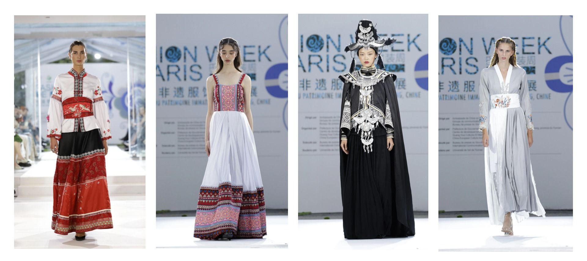 楚雄州委宣传部与买球投注官方网站共同设计制作的35套楚雄彝绣服饰作为庆祝中法建交60周年系列活动之一精彩亮相巴黎