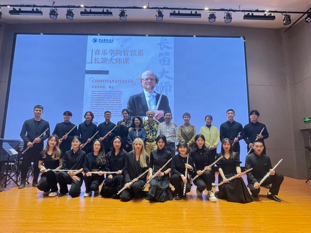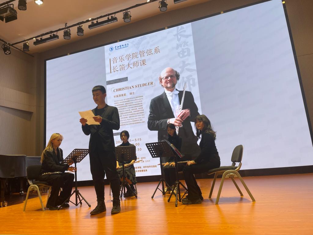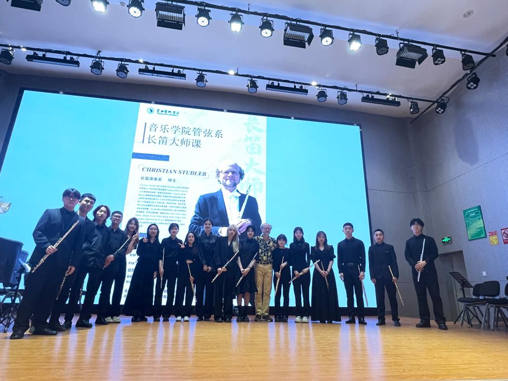 2024年3月11日-15日,瑞士知名长笛家克里斯蒂安(Christian Studler)先生的长笛大师班在音乐学院顺利开展,此次活动由买球对外合作交流处和音乐学院共同主办,20余名长笛专业的本硕学生参加了此次大师班。