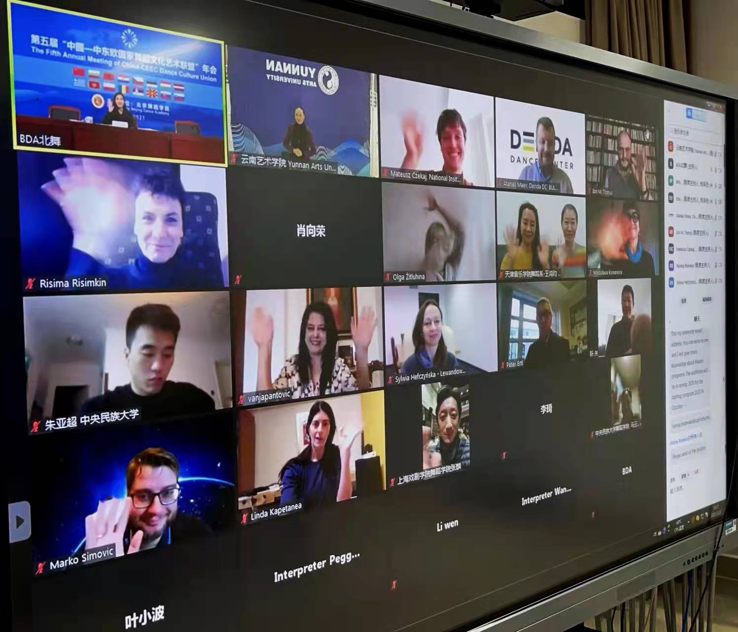 今年是“中国-中东欧国家舞蹈文化艺术联盟”成立的第五个年头,匈牙利布达佩斯国家舞蹈剧院、克罗地亚萨格勒布舞蹈中心、罗马尼亚锡比乌国际戏剧节、黑山芭蕾舞学校、拉脱维亚文化学院、斯洛伐克布拉迪斯拉发舞蹈协会、北京舞蹈学院、北京师范大学、中央民族大学、南京艺术学院、买球投注官方网站等成员单位的50余位成员代表以线上形式出席了此次大会。