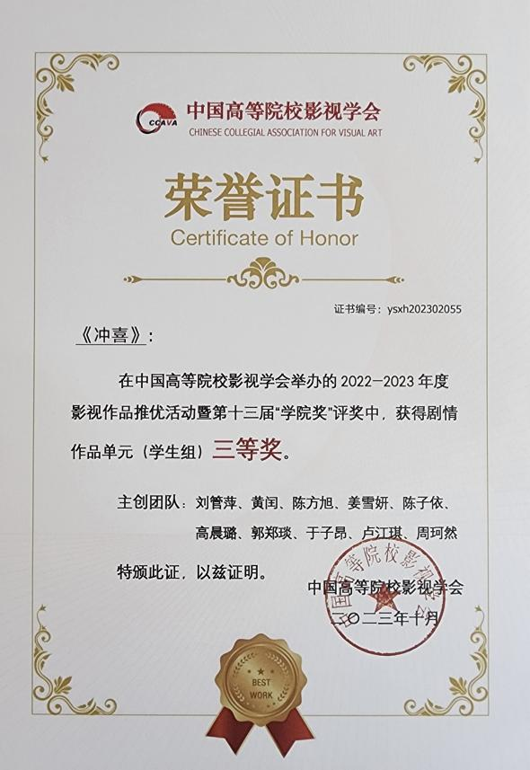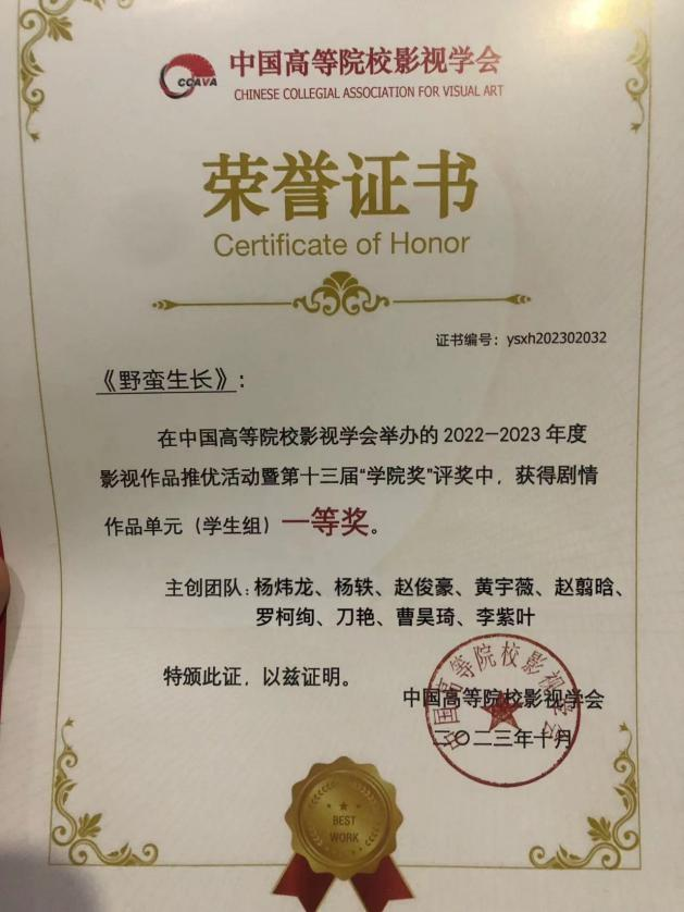 此次年会,入选学术交流的教师代表们在专题论坛上做了专题发言,分享交流学术创作理念;买球投注官方网站电影电视学院因成功承办学院奖评审活动荣获了中国高校影视学会“优秀组织奖”;最值得惊喜的是影视学院师生创作的优秀作品,在2022-2023年度学术成果推优活动暨第十三届“学院奖”中一举斩获6项佳绩,可谓“丰收载誉”之年。