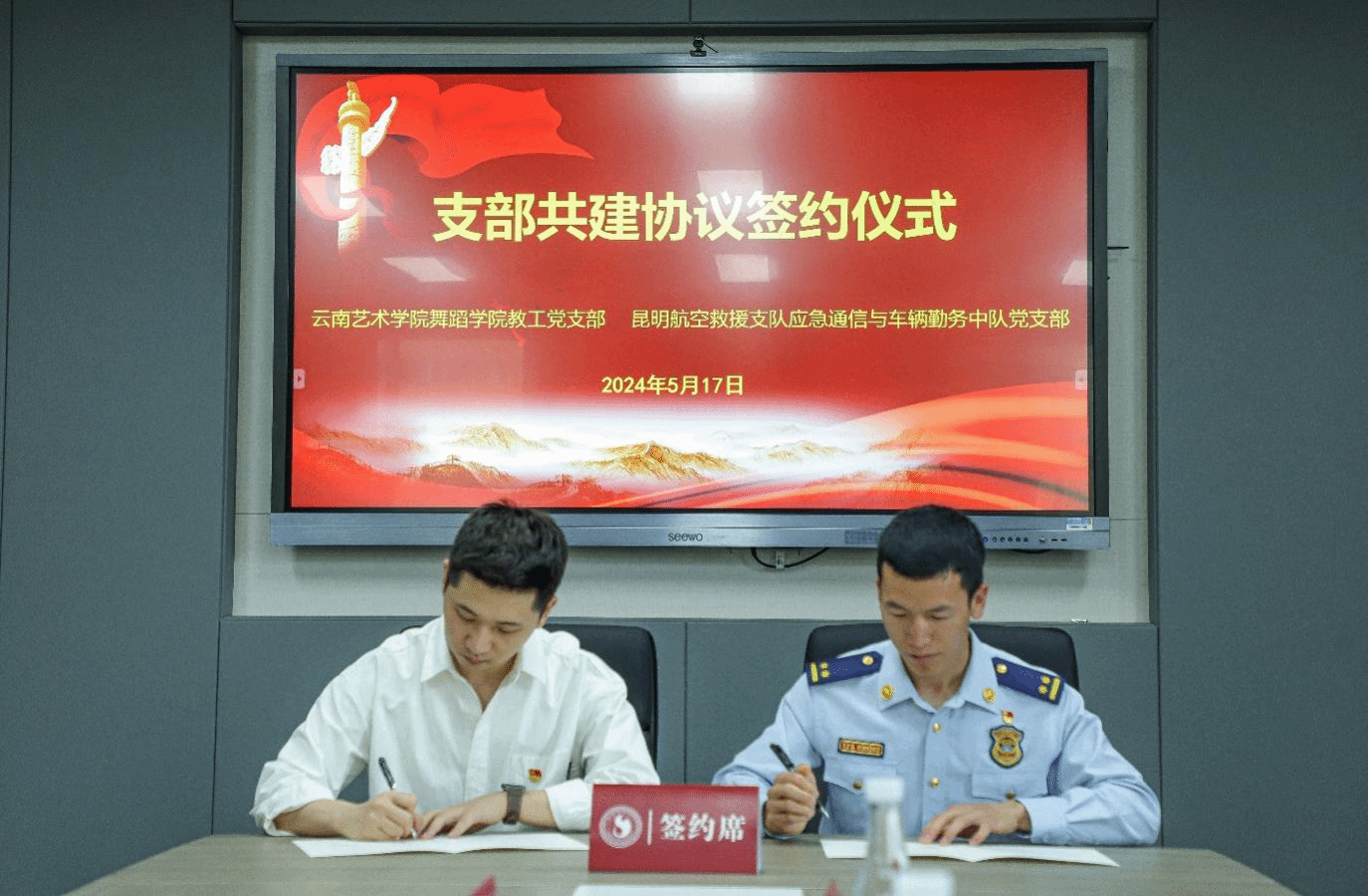 为创新党支部工作载体,提高党支部工作水平,通过共享优质资源,更好发挥共建党支部的专业特色和优势,不断拓展和完善党支部功能,开创党员引领示范,带动群团共建的良好工作局面,经协商,买球投注官方网站舞蹈学院教工党支部与昆明航空救援支队应急勤务中队党支部签订了党支部共建协议,正式确立为结对共建单位。