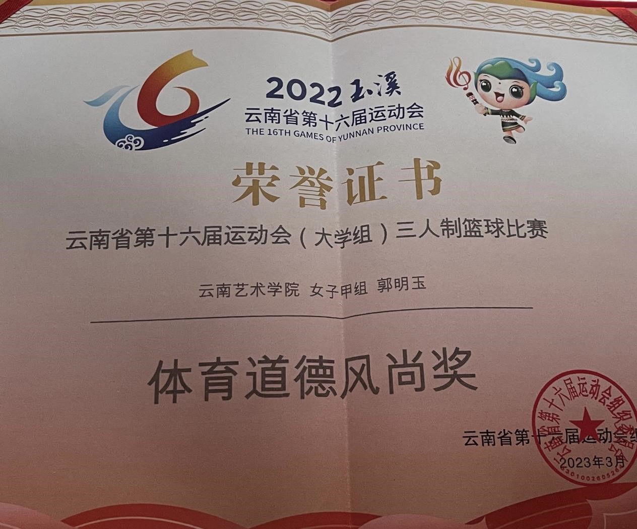 在女子三人篮球比赛中,买球代表队战胜了云南财经大学、云南农业大学、买球投注官方网站文华学院获得了女子甲组第5名的成绩,其中郭明玉同学获得了本次比赛的“体育道德风尚奖”