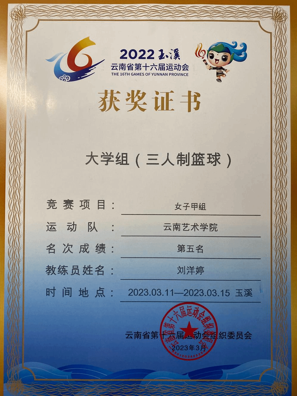 云南省第十六届运动会(大学组)比赛于2023年3月7日——3月16日在云南玉溪举办。买球投注官方网站田径队、女子三人篮球队、男子排球队在学校领导的支持下组队参赛,由体育教学部进行日常训练和带队比赛,其中,共派出田径队5名运动员、三人篮球4名运动员,男子排球10名运动员代表学校出征本次赛事,在与全省66所高校运动健儿的激烈角逐中,取得喜人成绩。