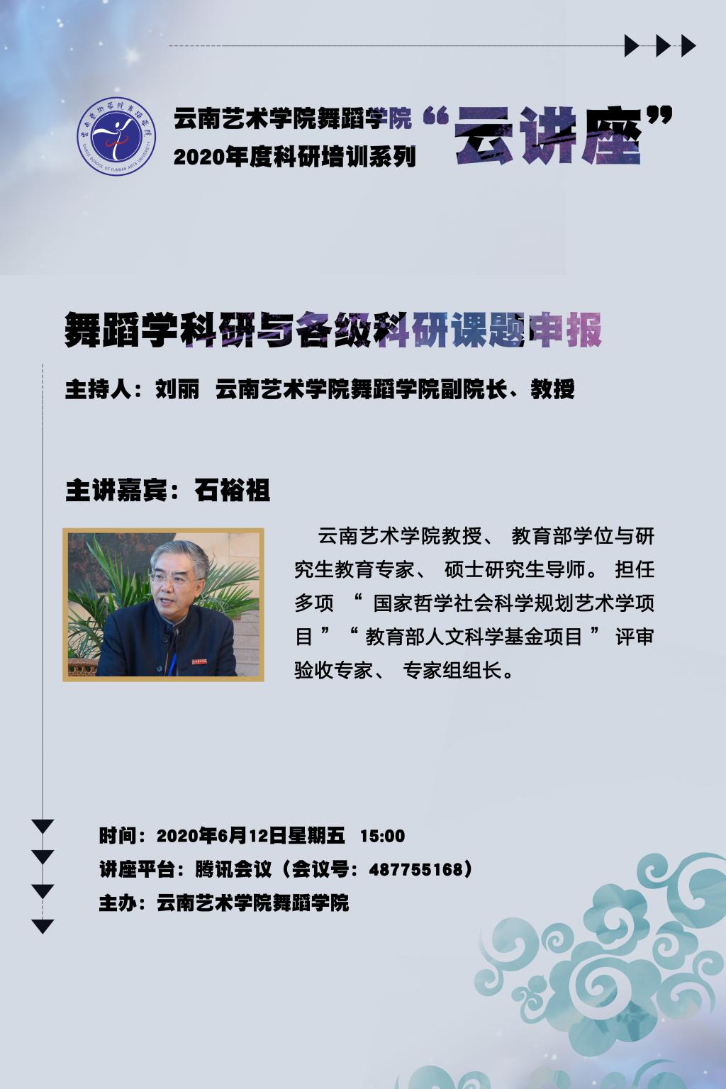 此次科研培训邀请了云南省民族艺术研究院原院长、《民族艺术研究》期刊主编马云华老师和买球投注官方网站教授、硕士生导师、舞蹈学者石裕祖教授,分别做了题为《艺术学课题(项目)申报要点》和《舞蹈学科研与各级科研课题申报》的专题讲座,并就师生在线提问进行答疑解惑。两位专家主要针对国家社科基金艺术学、云南省哲社艺术学规划课题的基本概况,艺术类课题(项目)申报的要点,以及课题的选题原则、申报书的填写规范、舞蹈学科的申报范围和思路等相关知识做了详细解读。刘丽副院长在总结中强调了教师课题申报特别要注意的重点问题,包括对课题指南的再三研读、对当下文化艺术发展前沿问题的宏观了解、如何将教学与创作的实践经验转化为理论研究思维等,并希望教师能够在长期的教学与创作实践积累中,逐渐加强研究意识,用科研成果反哺实践。