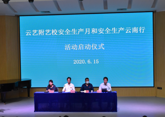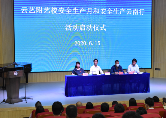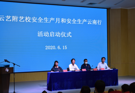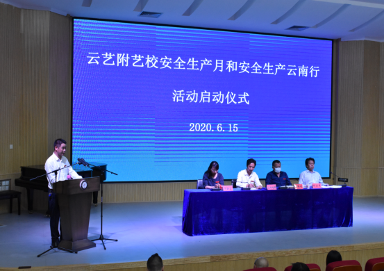 2020年6月是全国第19个“安全生产月”,为进一步强化师生安全生产意识,加大安全生产宣传力度,落实安全生产责任,构建平安和谐校园,附艺校于6月15日下午16:30在110演播厅隆重举行2020年安全生产月和安全生产云南行活动启动仪式。农布七林校长、樊腾发书记、杨石有副书记、侯静宜副校长、各部门负责人、行政人员、班主任、食堂方负责人、校卫队、宿管及学生代表共计80余人参加,启动仪式由杨石有副书记主持。
