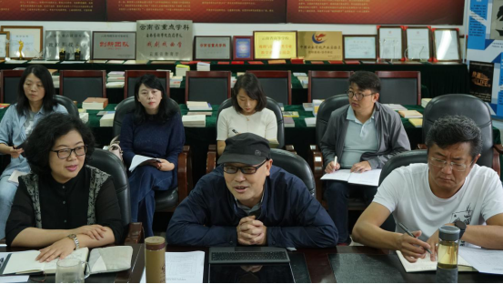 调研组观看了戏剧学院对外开放办学图片展示和专题宣传片,听取了主持行政工作的杨军副院长作的戏剧学院对外开放办学情况报告。杨军副院长从三个方面回顾了省级重点学科建设放眼世界和对话国际的历程,介绍了近几年来包括英国皇家戏剧学院前院长尼古拉斯·巴特与戏剧学院各专业师生剧目排演训练项目、加拿大吉尔莫肢体剧艺术家来戏剧学院来联合举办“云南话剧艺术高级人才培训暨与国际肢体剧训练工作坊”、戏剧学院赴老挝寮都公学开展“中华文化与东南亚”戏剧教育输出项目、举办“第三届全国戏剧与教育应用大会暨国际论坛工作坊”,以及教师和学生开展外事交流和出国培训,目前存在的问题和需要学校层面帮助解决的事项,“十四五”教育对外开放的思考和规划等情况。