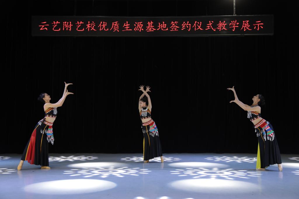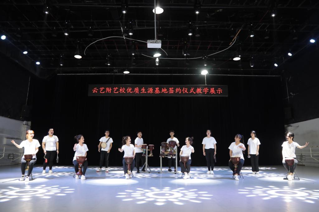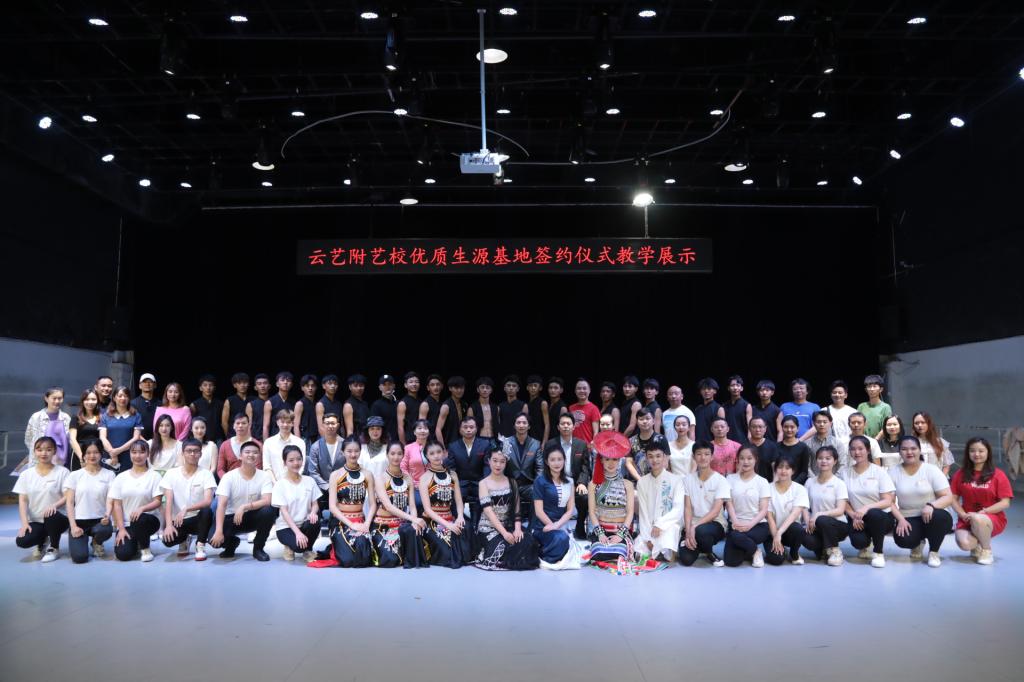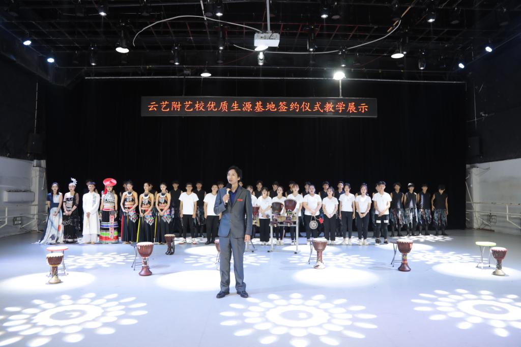 签约仪式上,附艺校农布七林校长致辞,他向到场领导及嘉宾介绍了学校的办学历史、发展现状以及目标规划。他指出,本次优质生源基地的构建,是为了更好地促进云南省艺术人才的培养,推动学校招生选材的质量和数量,扶持基层艺术培训学校(机构)的教学质量,建立多方长效合作机制。以基层艺术类培训学校的规模、质量、教学门类为条件,学校经过多方的调研考察,最终遴选了国内4个省份及省内4个地区的14家青少年艺术类培训学校为生源基地,促进云南省青少年艺术教育的良性发展,学校将依托自身的教育资源优势,本着在生源培育、师资队伍、教学科研、创作展演、艺术教育信息资源等方面“资源共享、优势互补、合作共赢”的原则,我们将依托自身的教育资源优势,为全省的文化建设和社会发展培养优秀人才,为全国艺术类高校输送更多优秀学生,为云南文化大省的建设做一份应有的贡献,更好的推广美育教育,践行文化自觉、文化自信、文化自强。