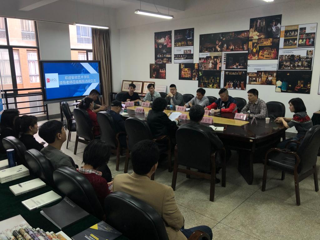 观影交流会结束后,安徽艺术学院一行参观了戏剧与影视学科的教学实验室,了解了教学设备的配置情况。随后,安徽艺术学院一行在戏剧学院重点学科实验室,同影视学院和戏剧学院领导班子、教师代表进行了沟通交流。戏剧学院主持工作副院长杨军教授主持会议。