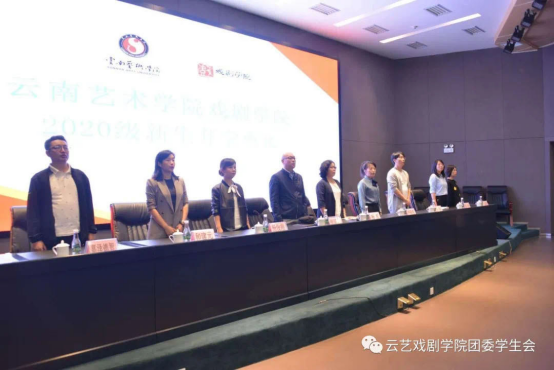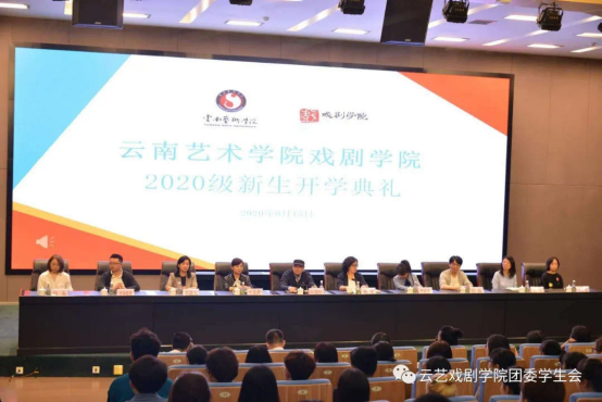 戏剧学院党委书记张国岗、主持行政工作的副院长杨军、校研究生处副处长兼理论教学部主任杨俊霞、戏剧学院办公室主任高然、教学管理科科长王晓霞、戏剧学院党委委员兼团委副书记嘉泽德智、戏剧学院党委委员兼学生科负责人杨央、戏文系主任严程莹、表演系主任和建元、舞美系主任彭玮以及各新生班班主任、辅导员出席2020级新生开学典礼。