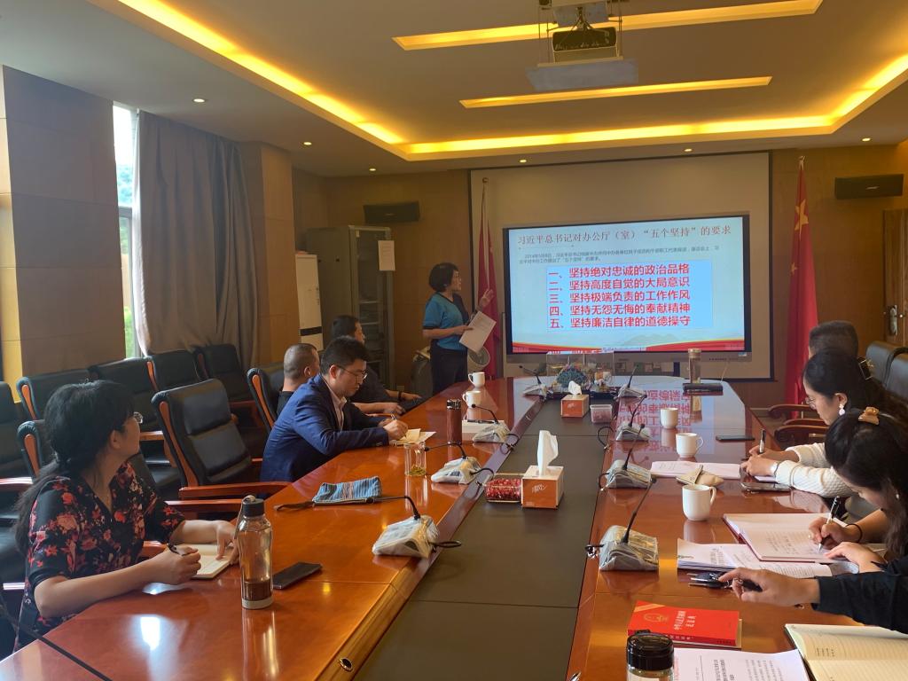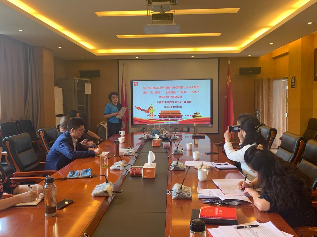 2020年10月6日下午,买球投注官方网站党委书记黄雁玲同志为办公室(党委巡察办)直属党支部全体党员上了一堂主题为“深入学习贯彻习近平新时代中国特色社会主义思想,做到‘五个坚持’,全面提高‘三服务’工作水平,切实把办公室建设好”的党课。