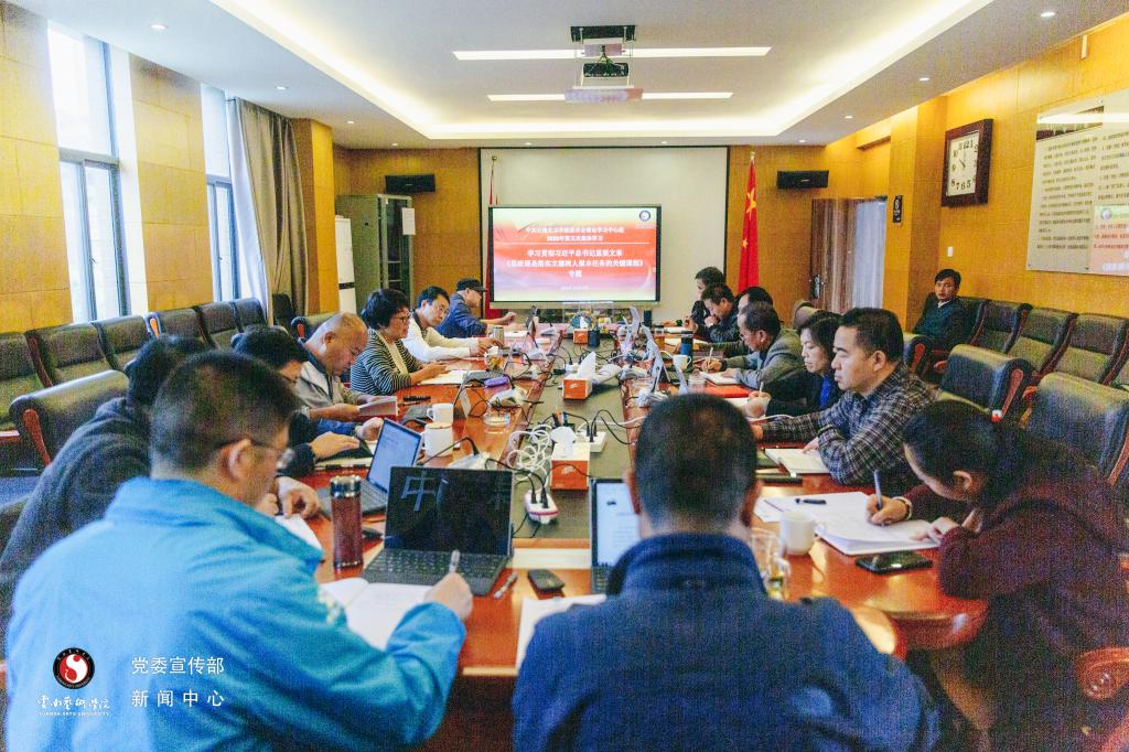 其次,校党委副书记杨国良做了题为《在育人、兴文中体现新担当,展现新作为》的主题发言,分别从新时代对教育、文化的新要求,新时代需要建设新大学,新时代要当好赶考人、交出合格新答卷三个方面进行了阐述。杨国良同志强调:坚持落实立德树人根本任务必须牢牢抓住全面提高人才培养能力这个核心点。习近平总书记亲自主持召开学校思政课教师座谈会充分反映出思政课建设的重要性与紧迫性,我们在办好思政课程的同时还要加强课程思政,推进“三全育人”。结合习近平总书记在教育文化卫生体育领域专家代表座谈会上的讲话精神,“十四五”时期,我们要从党和国家事业发展全局的高度,全面贯彻党的教育方针,坚守为党育人、为国育才,努力办好人民满意的教育,在加快推进教育现代化的新征程中培养担当民族复兴大任的时代新人;要充分发挥艺术专业优势,努力推动中华优秀传统文化创造性转化、创新性发展,继承革命文化,发展社会主义先进文化,不断铸就中华文化新辉煌。总体而言,要努力增强“管党治党、办学治校、育人育才、创新创业、成人成才”的本领。