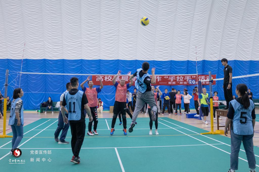 下午,高校基层党建工作“手拉手”活动——群团“联动”气排球友谊赛在买球投注官方网站气膜体育馆举行。结对共建院校本着“友谊第一,比赛第二”的原则,展开了激烈的对决。每一次的的攻守交替都引来场下观众的呐喊声,赛场上各代表队运动员顽强拼搏、团结协作呈现了一场场精彩的比赛,赢得场边观众的阵阵喝彩。