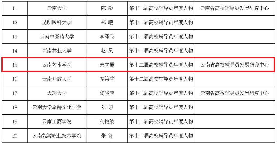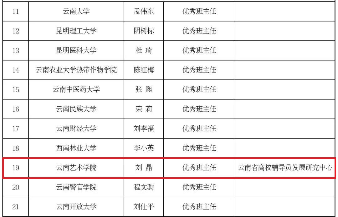 近日,云南省教育厅公示了2020年度云南省高校优秀辅导员和班主任通报表扬名单。