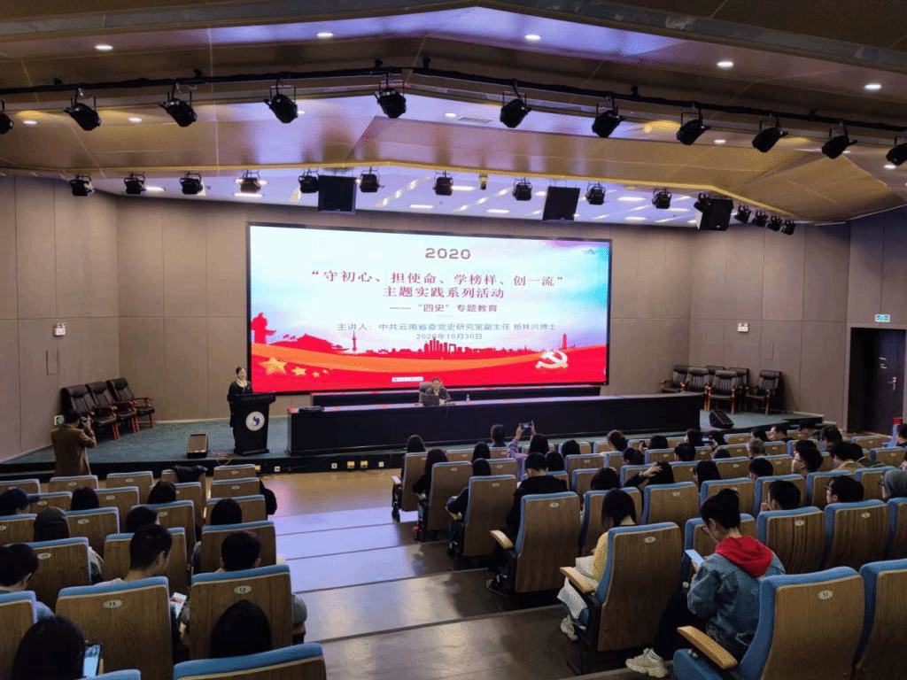 2020年10月30日上午9:00—11:00,买球投注官方网站马克思主义学院邀请云南省委党史研究室副主任杨林兴博士为马克思主义学院教师和设计学院师生党员作《学习中共云南革命历史弘扬光荣革命传统》专题讲座,讲座在校图书馆报告厅举行,两个学院党政领导、师生党员160余人参加了学习。讲座由马克思主义学院院长付梅教授主持。