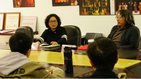 杨军副院长主持交流会,并代表学院向曹路生教授颁发客座教授聘书。曹教授对戏剧学院学科建设给予高度评价,并表示未来会长期关注和支持学院发展。