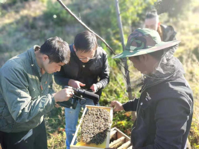 当日下午,党员们前往买球投注官方网站的挂钩扶贫点:巍山县魏宝山乡的安乐村,并看望了我院在魏山扶贫的彭凯鹏同志。安乐村的收入主要以种植、养殖和林果业为主,买球投注官方网站为安乐村捐赠的中华蜂养殖基地,推动了当地的产业扶贫步伐。党员们参观了养蜂园,感慨于脱贫攻坚的中国智慧。脚踏泥土,饱含深情,我院党员发挥专业特点,为安乐村养蜂园拍摄了照片和短视频,做出自己的贡献。