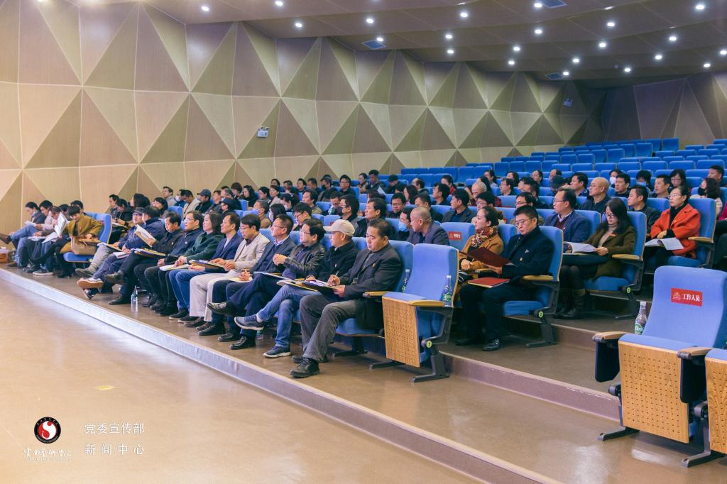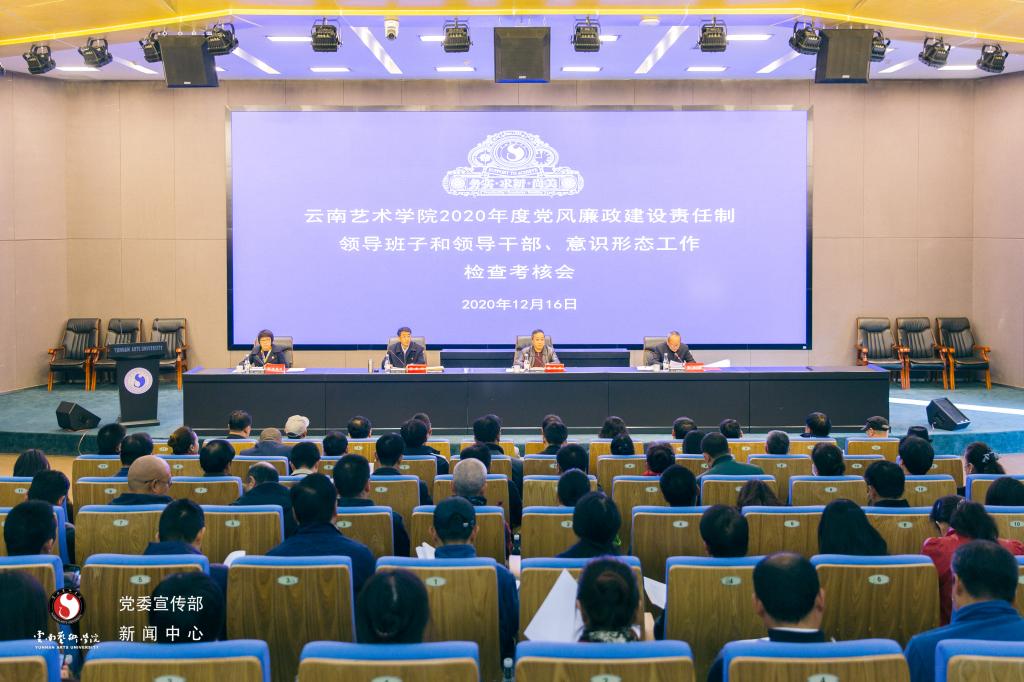 2020年12月16日,买球投注官方网站2020年度党风廉政建设责任制、领导班子和领导干部、意识形态工作检查考核会在买球图书馆报告厅召开。省委教育工委第九考核组领导班子和领导干部年度考核组组长、云南师范大学党委副书记张玮,党风廉政建设考核组组长、云南民族大学纪委书记李毅以及考核组全体成员出席会议。学校党政领导班子、各职能部门负责人、专家学者以及教职工代表参加了会议。会议由买球党委副书记、院长郭浩主持。