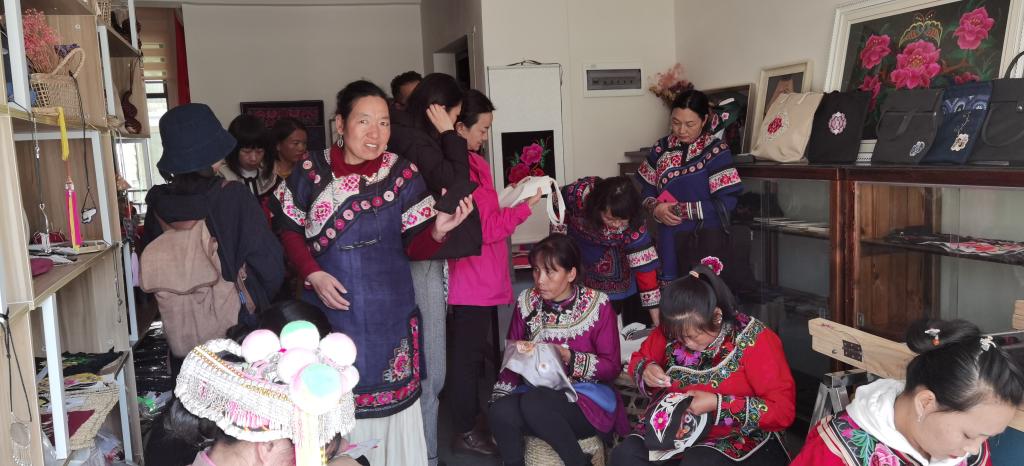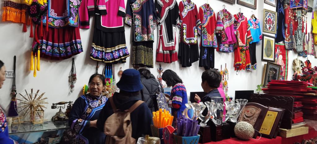 参观国家级刺绣传承人普玉珍民族服饰刺绣商铺