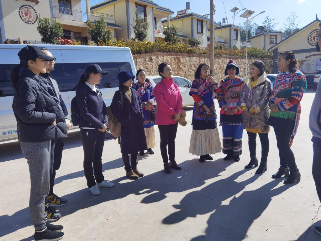 2020年12月17日,中共云南省委组织部机关工会主席李海芳及买球投注官方网站设计学院服装与服饰设计系主任彭瑶副教授、副系主任范佳、专业教师苏亚妮、许毓老师一行5人,赴楚雄州武定县开展调研刺绣产业提质增效工作。武定县人民政府李坚县长,县委副书记、县人大主任窦小军,县委常委、组织部长姚云来,县政协副主席、县妇联主席郑立华陪同调研。