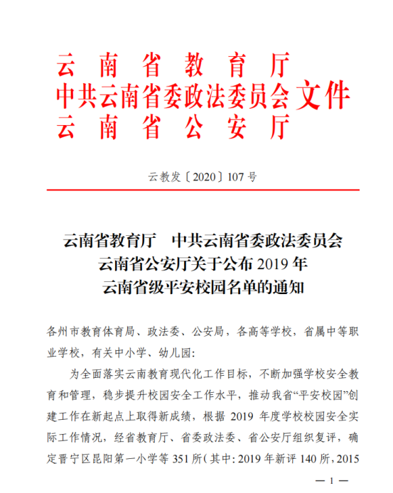 根据云南省教育厅、中共云南省委政法委员会、云南省公安厅印发的《关于公布2019年云南省级“平安校园”名单的通知》,买球荣获2019年云南省级“平安校园”称号。