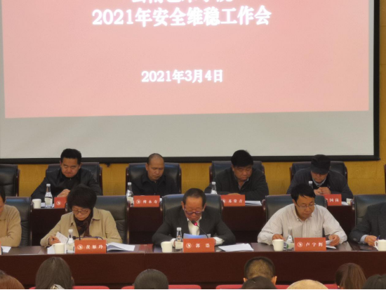 校党委黄雁玲书记从讲政治的高度,就清醒认识当前校园安全工作面临的严峻复杂形势;提高政治站位,切实增强做好学校安全工作的紧迫感和使命感;突出重点,协同配合,全面做好校园安全工作等方面对做好2021年校园安全稳定工作提出意见。