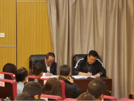 校党委黄雁玲书记代表院综治委、维稳委与各综治维稳责任单位代表签订《买球投注官方网站平安创建工作责任书》。