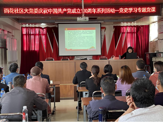 为庆祝中国共产党成立100周年,进一步发挥基层党建结对共建指导作用,按照买球投注官方网站与呈贡区雨花社区共建活动安排,3月19日下午,买球投注官方网站马克思主义学院副院长陈瑞琪同志参加雨花社区大党委开展的“庆祝中国共产党成立100周年系列活动”,并为雨花社区党员讲授“学习中国共产党云南历史——明理、增信、崇德、力行”的专题党课。