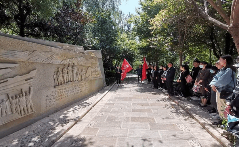 在三台山党建教育基地讲解员的引领和讲解下,全体人员认真参观了七组展现党史重大事件和重要精神的系列石雕,从百年激荡的红色历史中追溯红色记忆、汲取信仰力量,赓续红色精神血脉。