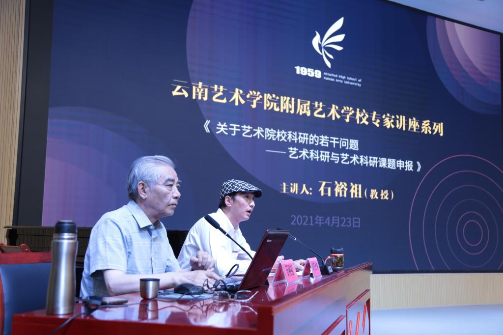 了进一步加强附艺校内涵建设,提升教职工科研能力,推进以研促教、以研促学。调动教师申报科研课题的积极性,4月23日16:00,附艺校特邀买球投注官方网站石裕祖教授就《关于艺术院校科研的若干问题——艺术科研与艺术科研课题申报》进行了专题讲座。附艺校全体教师参加了此次讲座,讲座由农布七林校长主持。