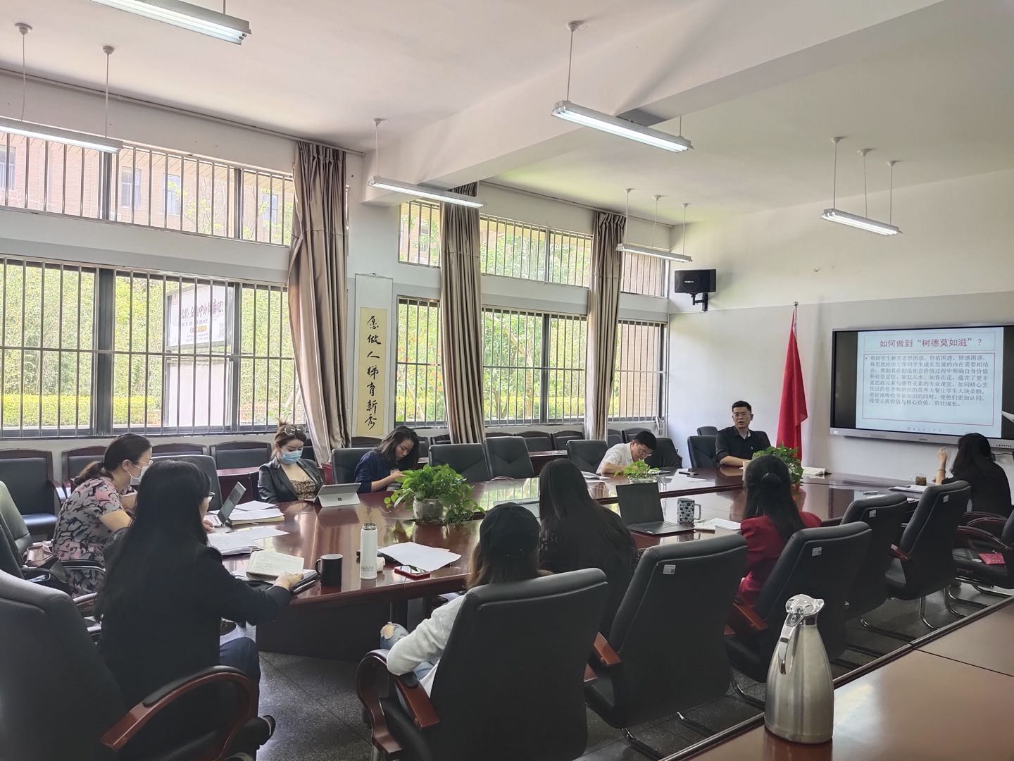 通过李三强书记绘声绘色的讲解,“课程思政”这个概念变得更加清晰,老师们切实体会到了课程“思政”教育的重要性,感受到课程“思政”教育亲和力和感染力。我院将着力以党学习教育为契机,抓住教师队伍“主力军”、课程建设“主战场”、课程教学“主渠道”,将党史学习融入课程思政建设,为教书育人提供新的方法与创新。