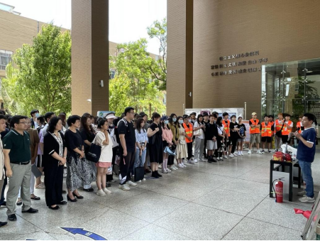中午12时30分,按照消防演习活动预案,模拟音乐楼发生火险,警报声响起,100余名师生在引导员的指引下沿两条逃生通道有序向外疏散,迅速到达音乐学院一楼广场集合。