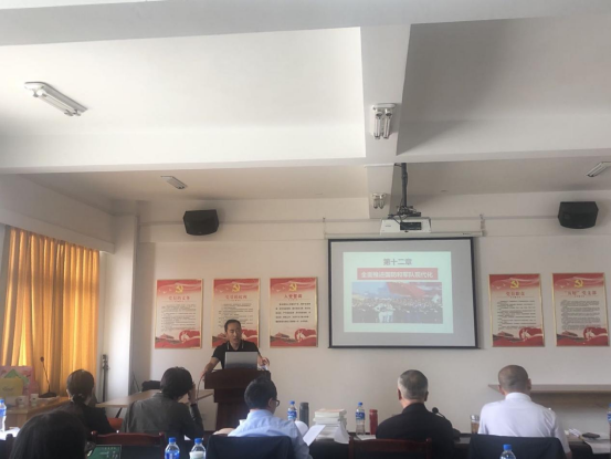 买球马克思主义学院夏能老师就《全面推进国防和军队现代化》专题进行展示。夏能老师从历史站位、理论站位、实践站位上形象生动、有层次、有重点地进行说课,展示了扎实的教学功底和幽默风趣的教学特色。