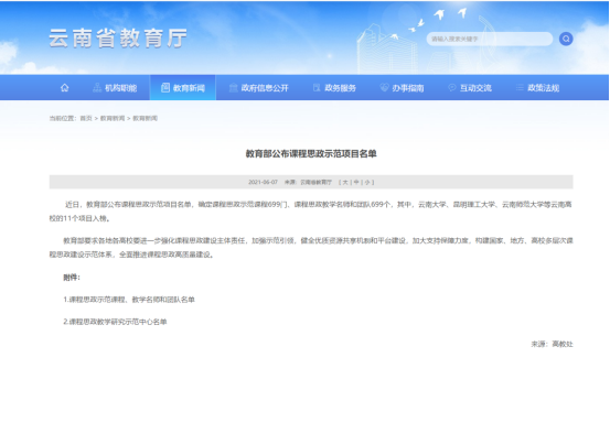 近日,教育部公布课程思政示范项目名单,确定课程思政示范课程699门(其中本科课程300门,研究生课程99门)、课程思政教学名师和团队699个。