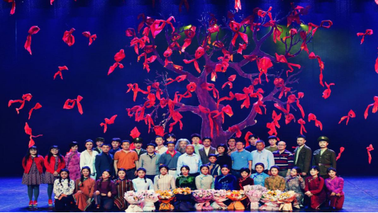 “小萝卜头”宋振中作为中国年龄最小的烈士,承载着儿童与革命先烈的双重身份,是红岩精神的缩影。以戏剧学院戏剧学系青年党员教师李魏为首的编导团队,以戏剧学院表演系一级演员何利飞老师和青年教师董彦辰以及戏剧学院、舞蹈学院、音乐学院部分学生为主的表演团队,以红岩精神为基础素材,以大家广为熟知的“小萝卜头”宋振中和其他革命者为原型,将历史事件以歌舞演故事的方式“诗化”地呈现在了舞台上,通过串起一系列感人故事,塑造出一组组有崇高信仰、坚定信念和不屈灵魂的革命者群像。全体演职人员藉由这部音乐剧的创作,以实际行动缅怀了革命先烈,继承光荣传统,不忘历史,牢记和践行“为党育人、为党育才”的初心使命。
