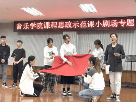 音乐学院以小剧场为平台,把课程思政“小课堂”与学生成长“大舞台”统一起来,将思政教育融入声乐类、演奏类、音乐史、音乐教学论等主要课程,推进了思政课与课程思政同向同行,发挥了协同效应。此次以“百年党史教育”为主题的课程思政示范课观摩交流,汇集了《演唱主科》、《民歌模唱》、《歌剧片段实践》、《钢琴教学法》等核心课程,通过小剧场,将党史教育、“四史”教育、社会主义核心价值观等思政元素和红色基因融入专业课程教学与实践,潜移默化、如盐化水般地完成了国情教育和主流价值熏陶,把家国情怀、文化自信自然渗入课程方方面面,实现润物无声的效果。