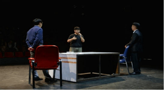 在开班式后,高瑞嘉老师迅速进入导演状态,指导剧目排练,跟师生进行互动,“人物关系”“导演的调度”“行动的逻辑”等等关键词不停地被提及,让在场师生认识到导演在排戏过程中的关键与侧重点。随后,高老师还观看了由2019级戏剧影视导演班的学生带来的音乐音响小品展示,他对同学们的展示给予充分的肯定和鼓励,在点评和建议中,他强调“舞台的仪式感”,让同学们一定要让舞台“造梦”的过程保持真实感。