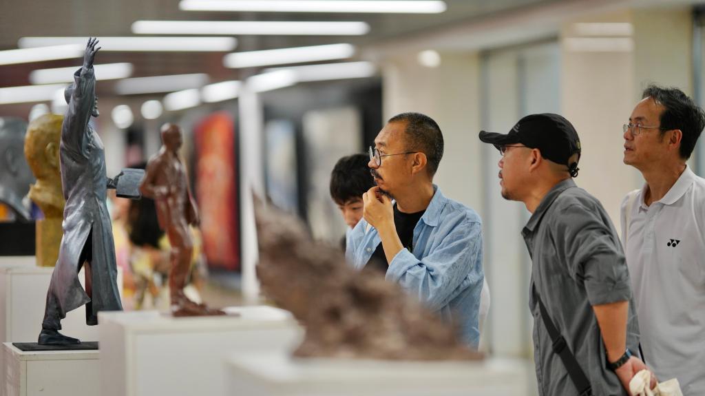 “百年征程•初心续航”展览作品分为“百年征程”和“美好生活”两个板块,由买球投注官方网站美术学院、设计学院、影视学院、戏剧学院、高职学院等多个教学单位的师生倾心创作,涵盖了中国画、油画、版画、雕塑、水彩、摄影、书法等画种类型,包括特邀教师作品94组,学生作品40组。同时还特别展出了李忠翔先生、史一先生等捐赠的学校部分馆藏作品31件,其中包含了黄永玉、吴长江、代大权等老一辈著名艺术家的作品,十分珍贵。