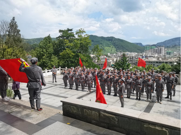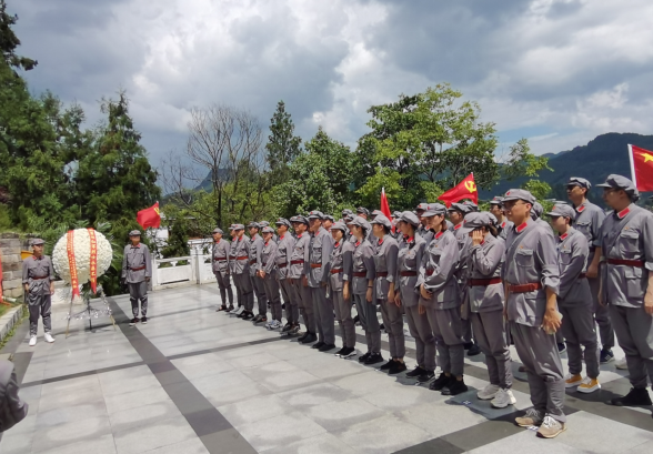 26日下午,全体参训学员来到扎西红军广场,瞻仰扎西红军烈士陵园,向革命先烈敬献花篮。党员在余光荣书记带领下重温了入党誓词。