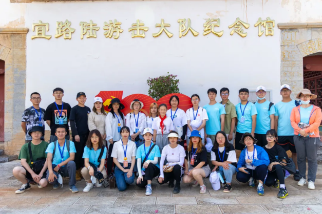 8月2日上午志愿者们为七彩水稻秧田与万寿花海田地除草。下午,宜良县团委韩松耘带领“三下乡”宜良团队到达宜路陆游击大队纪念馆(宏山公社旧址)进行参观,由一名优秀的少先队员为大家讲述宜良红色故事。宜良县耿家营乡宏山公社旧址建于二十世纪三十年代,为乡绅李玉田的宅院,该建筑占地面积600余平方米,为一正厅三厢房两进室纵向部局的院落。在革命战争时期,撒建云、李富、艾意明等革命前辈组建的宜良地下党边纵二支队“宜路游击大队”在此活动过。1958年宏山公社成立,至1981年间该宅院作为宏山公社办公用地,见证了一段特殊岁月的历史。