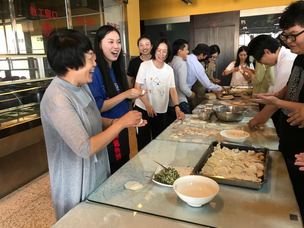 包饺子现场大家分工协作,有人和面,有人拌馅,有人擀皮,有人包褶,大家配合默契,干得热火朝天。因为来自五湖四海,包的饺子也形态不一,大家一边包饺子,一边亲切交谈,欢声笑语不断,处处洋溢着温暖与祥和的气氛,这不仅让新入职人员感受到了买球大家庭的温暖,更让他们切身感受到了学校党委行政的亲切关怀。