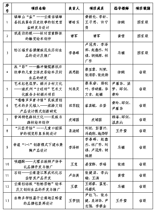 二、学生申报国家级大学生创新创业训练计划,其中3项荣获国家级立项,10项获得了省级立项。具体情况如下: