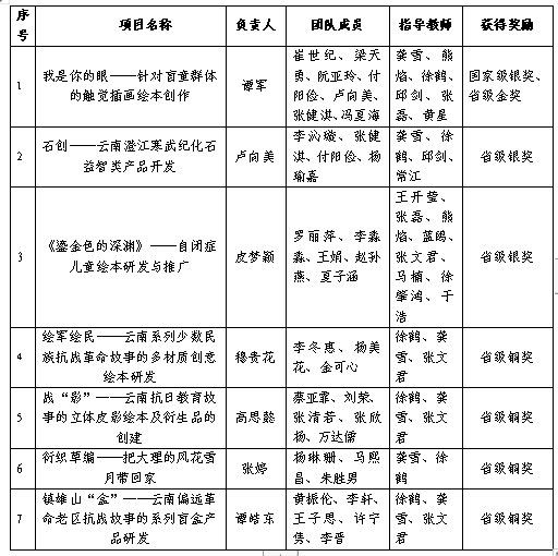 一、参加第七届中国国际“互联网+”大学生创新创业大赛,取得了国家级银奖一项、省级金奖一项、省级银奖二项、省级铜奖四项的优异成绩,具体情况如下: