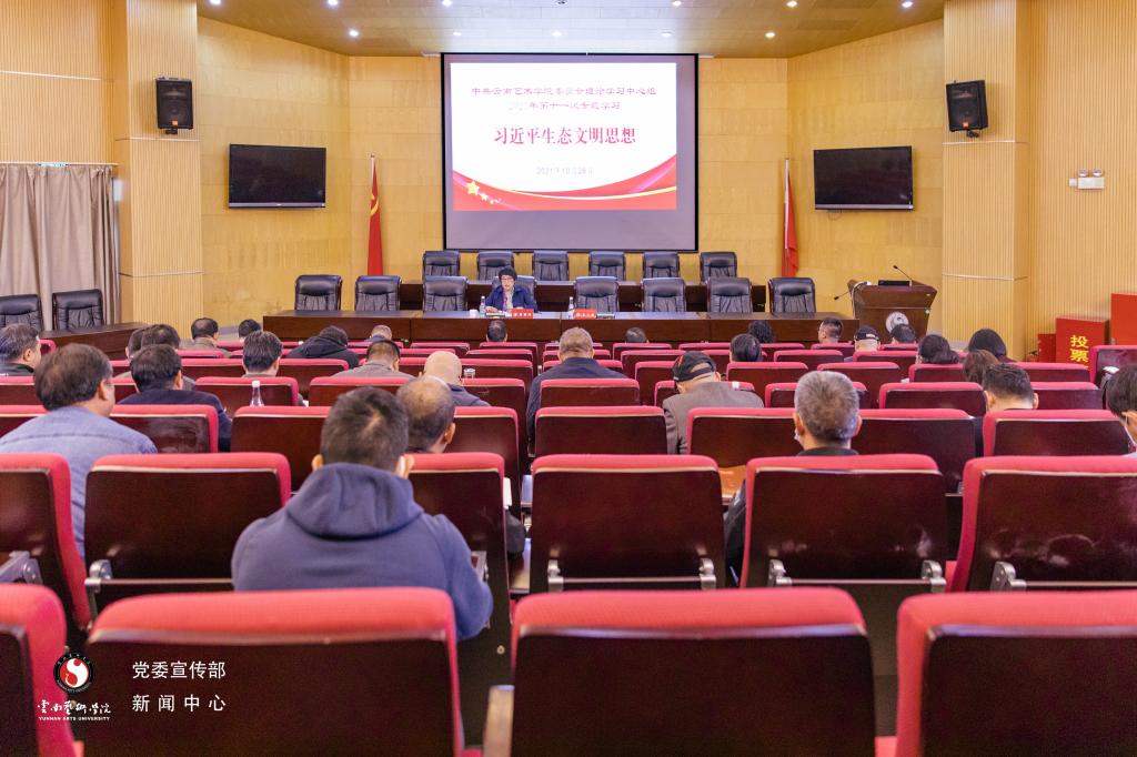 最后,校党委书记黄雁玲从“深刻领会习近平生态文明思想的重要意义和丰富内涵”“进一步抓实抓好生态文明教育”两个方面做了总结发言。她强调:我们要抓住联合国生物多样性大会在昆明成功召开的有利契机,结合深入学习贯彻习近平总书记考察云南重要讲话精神,进一步学习贯彻习近平生态文明思想,把握习近平生态文明思想的基本内容、精神实质、实践要求、重要意义,结合学校实际,担当使命,做习近平生态文明思想的坚定信仰者、积极传播者、忠实践行者,为云南建设成为生态文明建设排头兵、中国最美丽省份作出应有的新贡献。她要求:要进一步整合资源,把习近平生态文明思想融入教育教学全过程;要充分发挥学科优势,将习近平生态文明思想融入科研和创作展演;要深入开展节约型单位、绿色学校等创建行动,增强师生生态文明建设责任感。