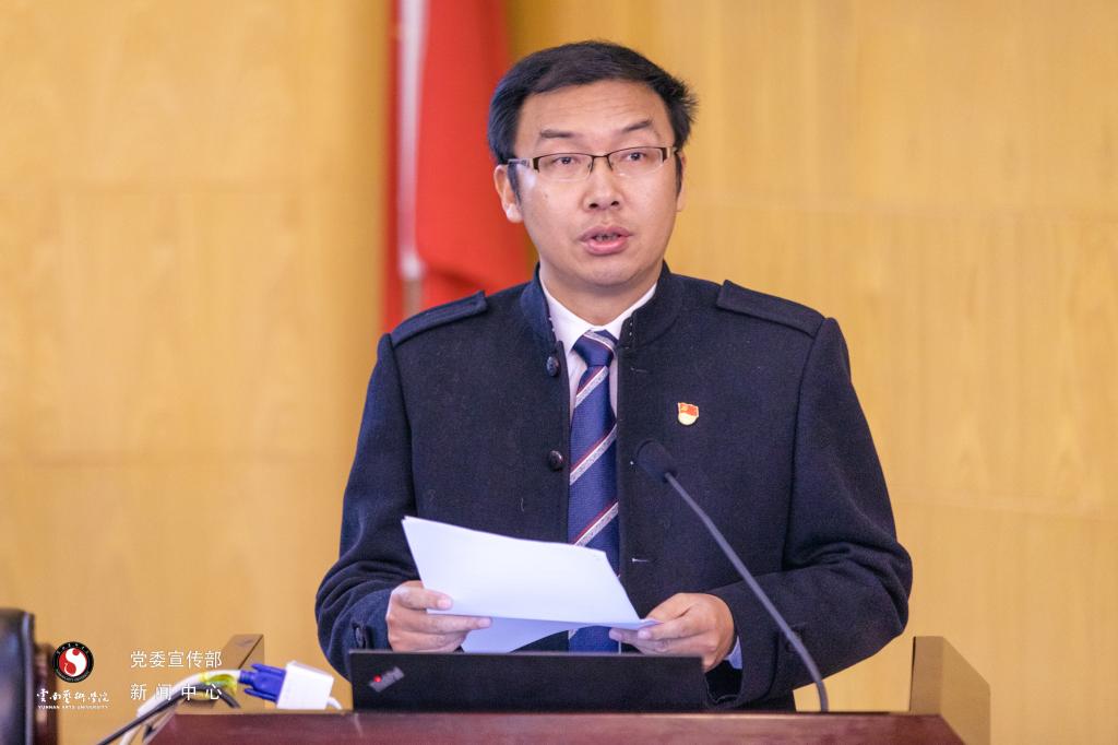 在前期个人自学的基础上,紧密结合学校、部门工作实际,副院长陈劲松、对外合作交流处处长侯云峰、马克思主义学院院长付梅先后进行了交流发言。校党委书记黄雁玲做了总结发言。
