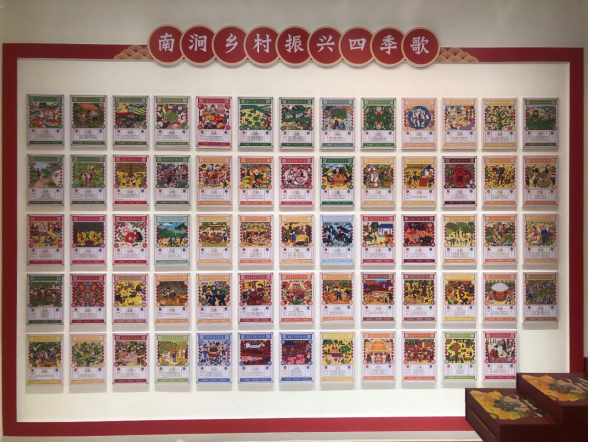 山远近,路横斜,红色振兴富农家。团队成员克服地域生活差异,融入当地少数民族生活,与群众同吃同住。在创作中,团队凭借设计学科专业特色,充分发挥文化对乡村振兴的促进作用,一是依托农民画技艺传习、剪纸技艺传习模式打造了“同心工作坊”,以乐秋乡三农产品为创作题材,以农民画为表现形式,反映农民对美好生活的向往,表达对党和国家最纯真可爱的质朴感情。二是依托染织技艺传习模式,打造了“筑梦工作坊”以传统手工艺带动乡村产业发展,绘就“村美民富,和谐美丽”的新蓝图。三是依托编织技艺传习模式,打造了“乡思工作坊”三个工作坊的建立成功践行了“设计为人民服务”的思想,把设计创意的成果刻画在了米家禄村街头巷尾。