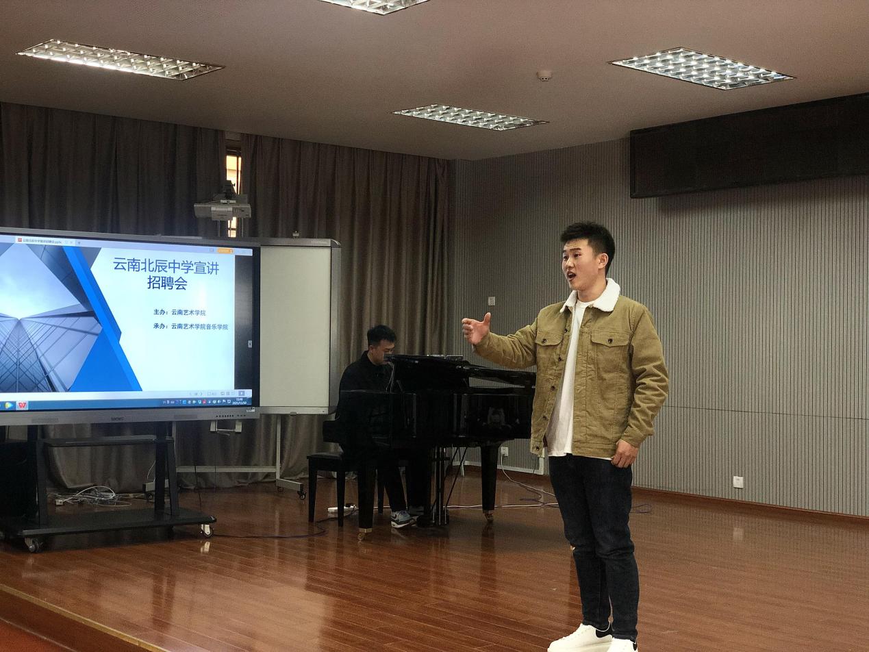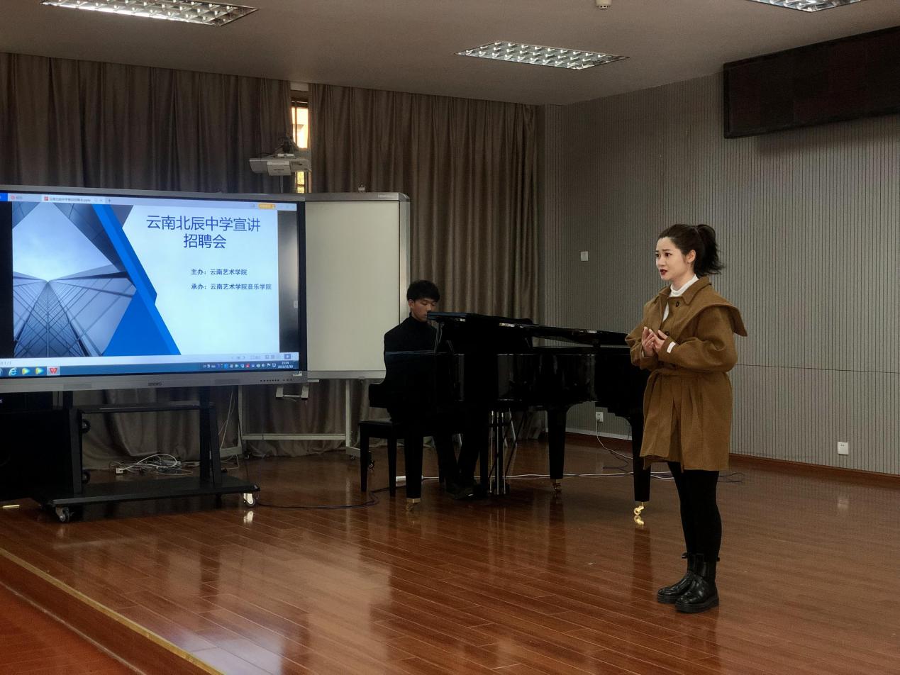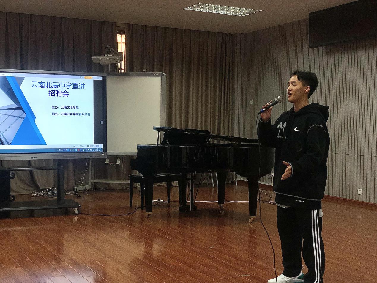 2021年11月10日,云南北辰中学宣讲招聘会——买球投注官方网站专场在买球音乐学院成功举办。此次宣讲招聘会由买球投注官方网站学生工作部(处)主办,音乐学院承办。云南北辰中学的副校长何振文、办公室主任魏天鹏、艺体组组长黄山、音乐组组长罗静4位老师,音乐学院辅导员李洲强、吴建勇及来自音乐学院、高职学院的34名毕业生参加了此次宣讲招聘会。云南北辰中学计划招聘音乐教师岗位共计10人。