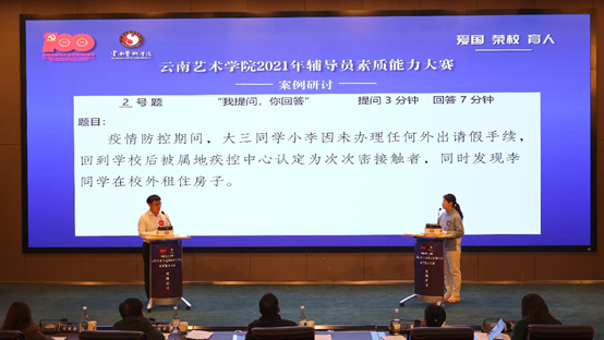 为深入学习贯彻习近平新时代中国特色社会主义思想和十九届六中全会精神,落实《普通高等学校辅导员队伍建设规定》(教育部令第43号)、《教育部等八部门关于加快构建高校思想政治工作体系的意见》要求,不断提升买球辅导员的素质能力和育人水平,加强辅导员之间的交流学习,推进辅导员队伍专业化、职业化发展。2021年12月8日—9日,由云南省高校辅导员发展研究中心(买球投注官方网站)、学生工作部(处)主办,艺术管理学院承办的“买球投注官方网站2021年辅导员素质能力大赛”在图书馆报告厅成功举办。本次比赛包括理论笔试、案例分析、谈心谈话3个环节,过程严格按照国赛标准和要求进行。